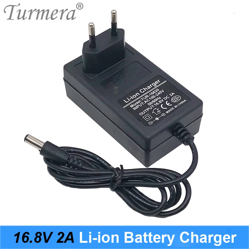 Turmera 16,8 V 2A 18650 зарядное устройство DC 5,5 мм * 2,1 мм для 4S литиевый аккумулятор для 14,4 V 16,8 V отвертка батарея с индикатором