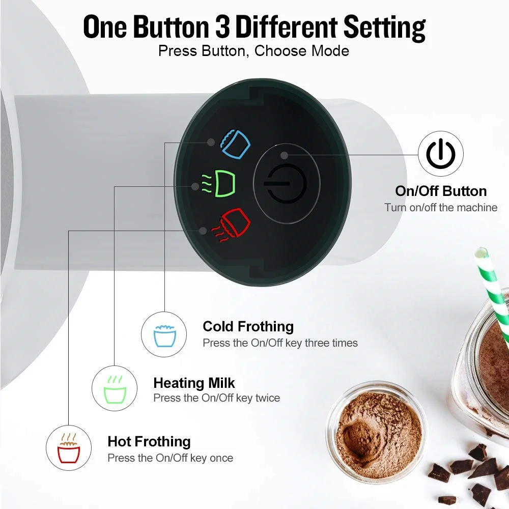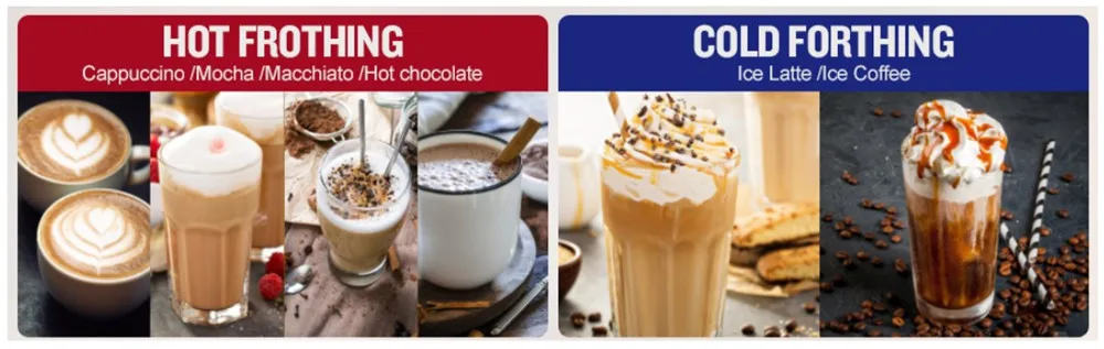 Молочная пена предоставляет вам 2 варианта молочной пены. Наслаждайтесь ли вы горячим пенным молоком или холодным шелковистым молоком. Он нагревает молоко и делает густую пену, удовлетворяя все ваши варианты молока