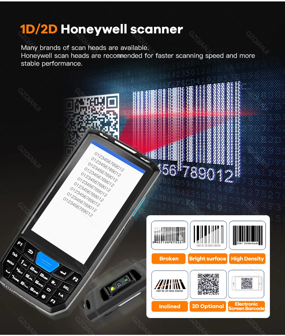 ●2DСканнер CMOS (опционально):Newland E483/ Honweyll N6603, поддержка PDF417, MicroPDF417, GS1 Composite, Aztec, Code, матрица данных, QR Code, Micro QR Code, MaxiCode, Hanxin Code и т. Д.