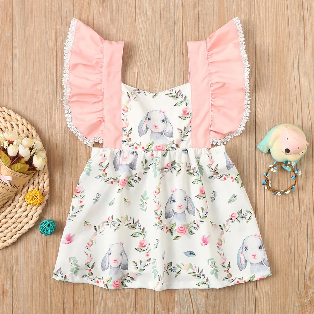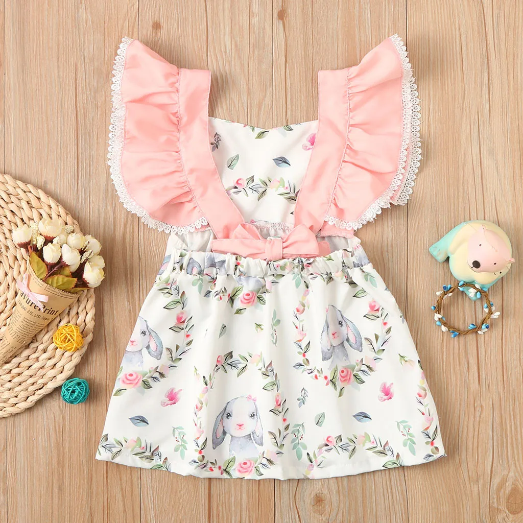 Пасхальное платье с кроликом для маленьких девочек; Платье принцессы с принтом кролика; Повседневные платья без рукавов с оборками и открытой спиной; Летняя одежда