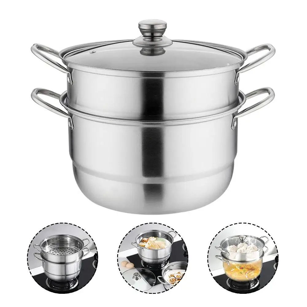 Отзывы о Пароварка 2 в 1 из нержавеющей стали с видимой крышкой двухслойная суповая