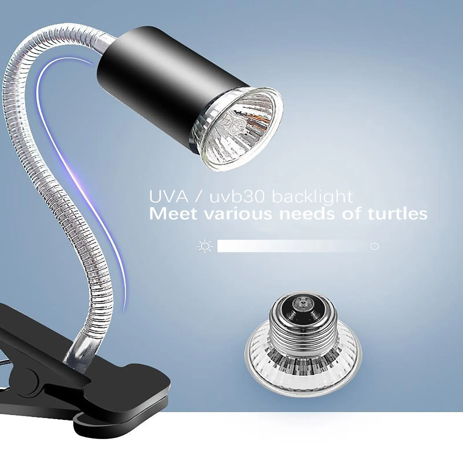 Гибкая и вращающаяся на 360 ° поддержка для перемещения лампы по желанию и поиска правильного места и освещения наиболее подходящей области резервуара для черепахи.