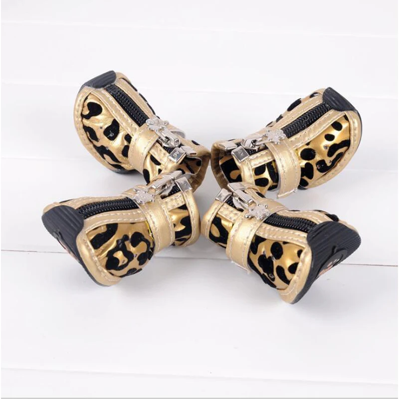 Леопардовая Обувь для собак, водонепроницаемые Нескользящие ботинки из полиуретана, мягкие кроссовки для щенков, пинетки для чихуахуа, Йорка, маленьких собак, кошек, обувь