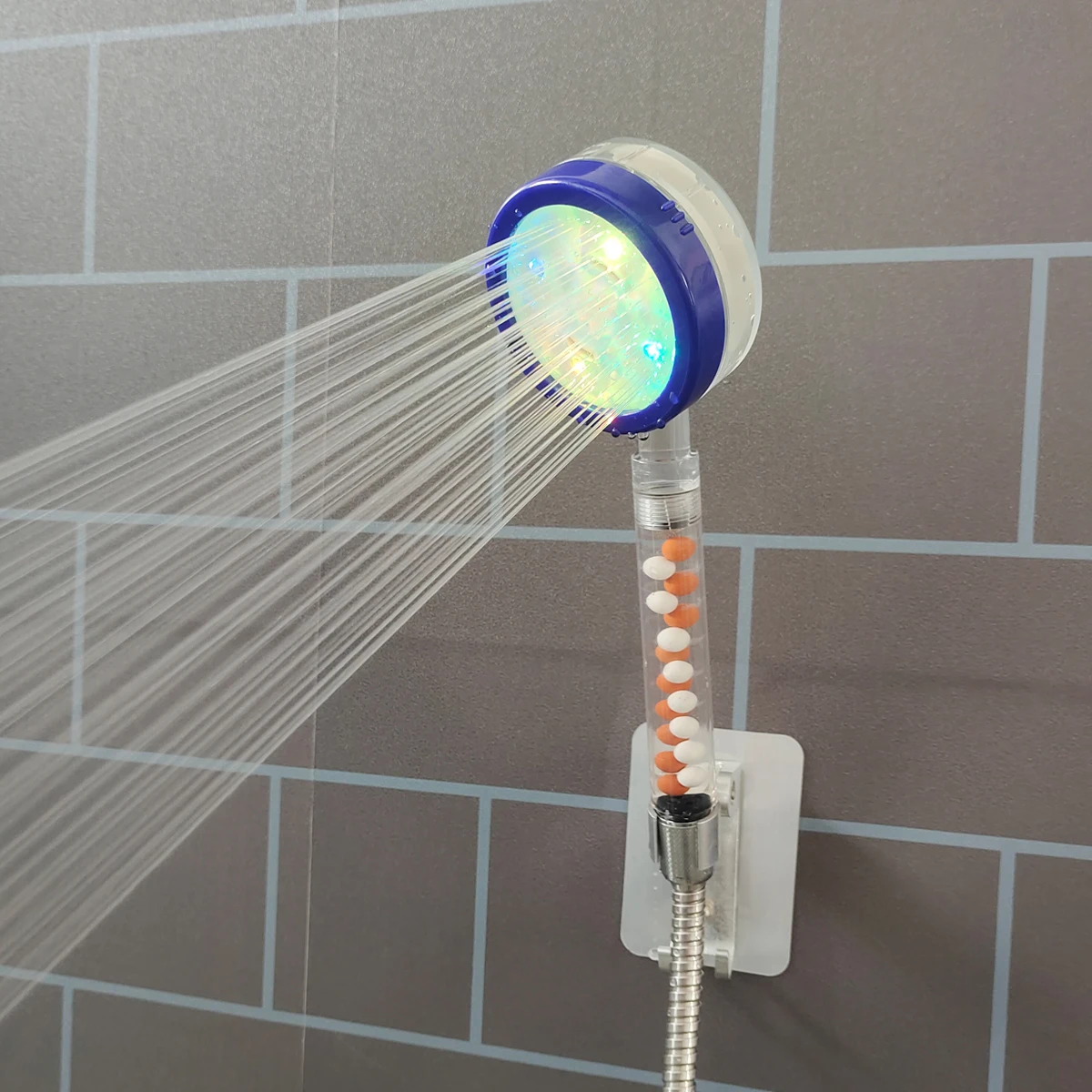 Он может менять цвета в зависимости от температуры воды в душе. Только 3 цвета. Когда температура воды достигнет определенного диапазона. Он будет заменен на другой цвет. Зеленый цвет (температура воды <30 ℃/85 ℉), синий цвет (31 ℃-39 ℃/85 ℉-105 ℉), красный цвет (40 ℃-50 ℃/105 ℉-120 ℉)