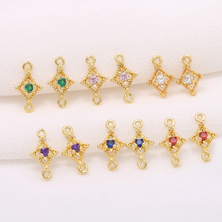 Отзывы о 7*11 мм из 14-каратного золота с Цвет латуни и циркона 2 отверстия ромб подключения