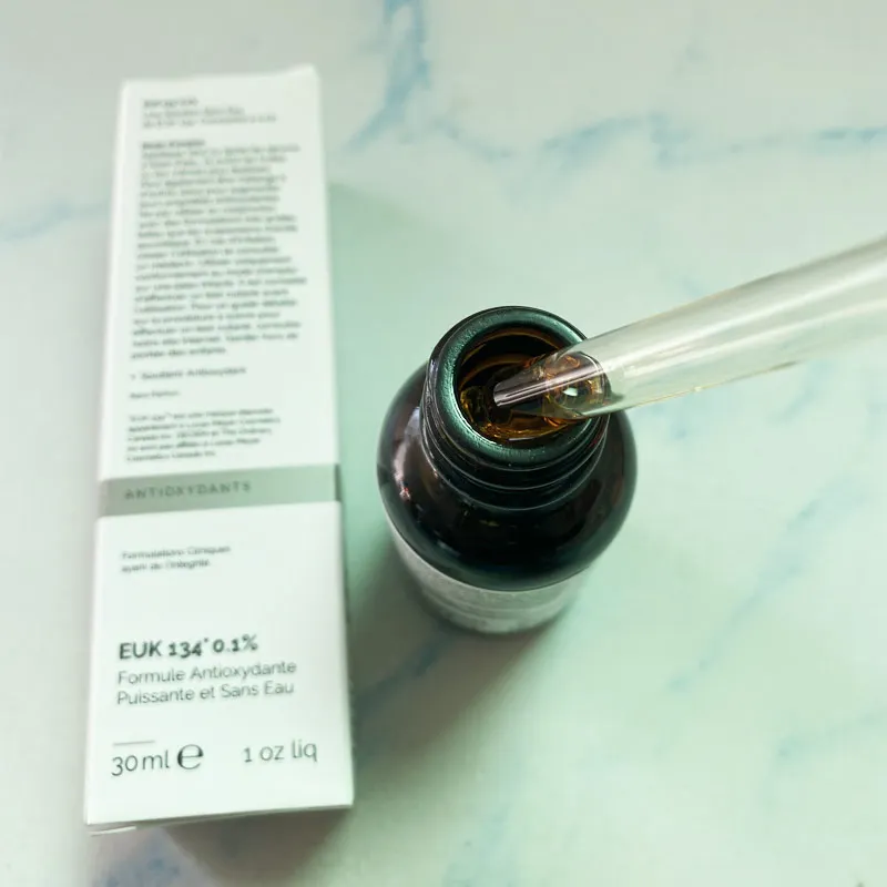 Антиоксидантная Сыворотка для лица-EUK 134 0.1% - 30 мл-EUK 134 является мощным антиоксидантом. Борется со свободными радикалами и преждевременным старением кожи, избегая потери воды и кислорода. Антиоксидантные уровни снижаются со временем и вследствие воздействия на кожу внешних агентов, таких как загрязнение, холод, что может привести к ухудшению состояния нашей кожи, появлению пятен, покраснению. Формула не содержит воду, силиконы, масло или спирт. С только 0.1% этилбисиминометилгайаколом марганцевого хлорида на рынке нет продукта с более высокой концентрацией, было показано, что EUK 134 уменьшает видимое покраснение кожи и защищает от ультрафиолетовых лучей, предлагаем Вашей коже всю необходимую защиту в течение дня. EUK 134-это продукт с большим качеством, который сделает ваши обряд красоты и защиты вашей кожи чем-то эффектным. Цель: антиоксидантная поддержка и покраснение. Коллизии: Не используйте с высоко кислотными составами, такими как аскорбиновая кислота. Указаны для: всех типов кожи/кожи зрелого возраста. Способ применения: применяется отдельно или после сывороток на водной основе, а также перед другими видами лечения, такими как кремы или масла. Рекомендуется применять один раз в день, утром или вечером, отдельно или после сывороток на водной основе, а также перед более тяжелыми маслами или кремами. Если вы хотите, вы можете смешать его с другими методами лечения, чтобы увеличить его антиоксидантную способность, например, естественные увлажняющие факторы + Ач. Избегайте использования с высоко кислотными формулами, такими как аскорбиновая кислота.