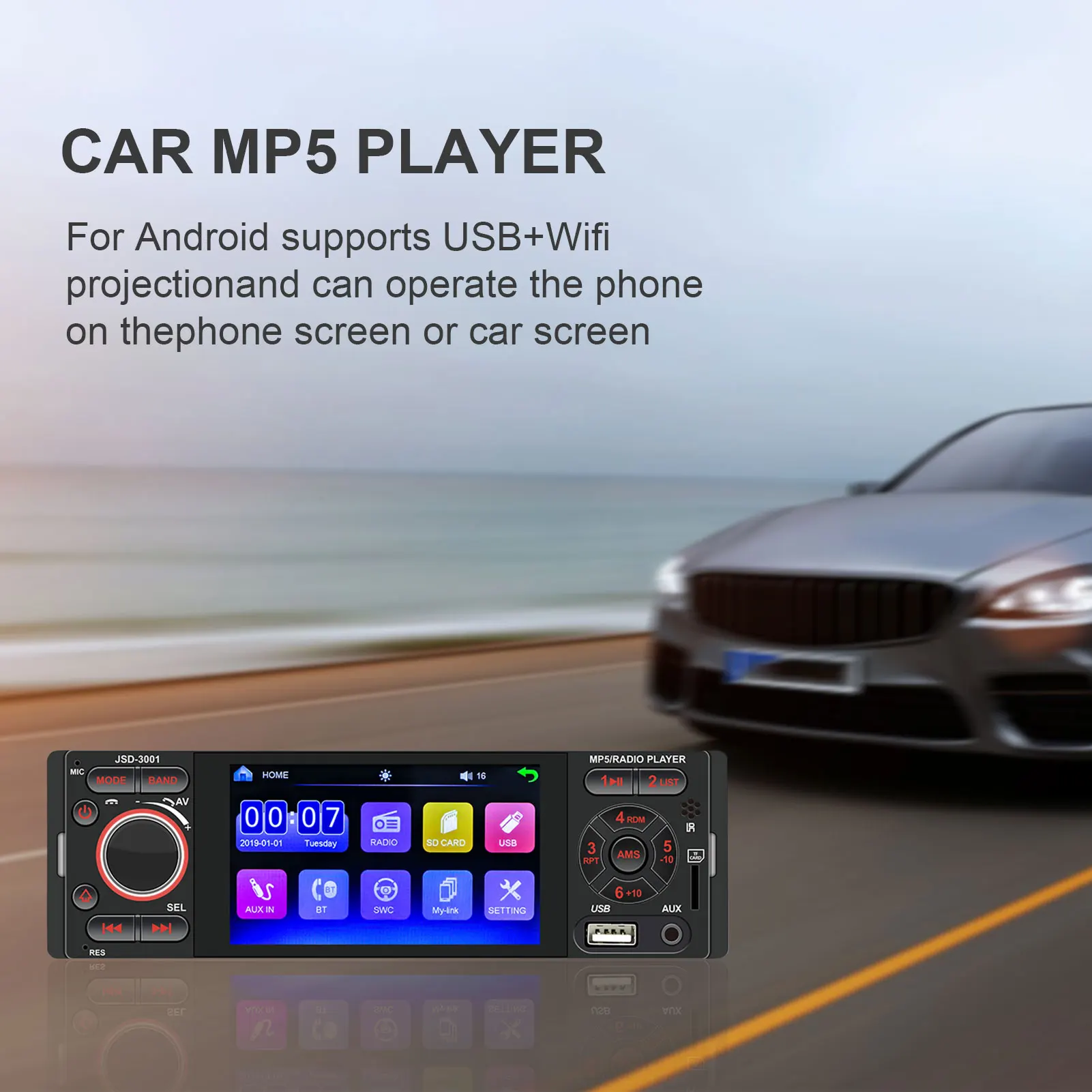 Тип: Автомобильный MP5 плеерМодель: JSD-3001