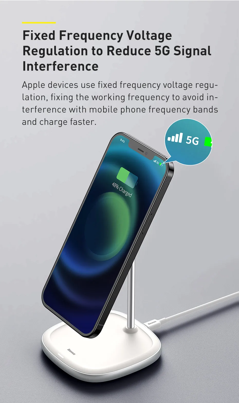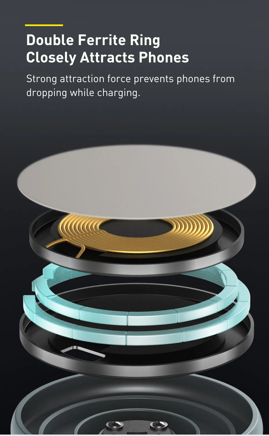 Предназначен для магнитной беспроводной зарядки на серии Apple 12. Двойное магнитное кольцо помогает уменьшить поток утечки и обеспечивает автоматическое и точное выравнивание между телефоном и этим беспроводным зарядным устройством.