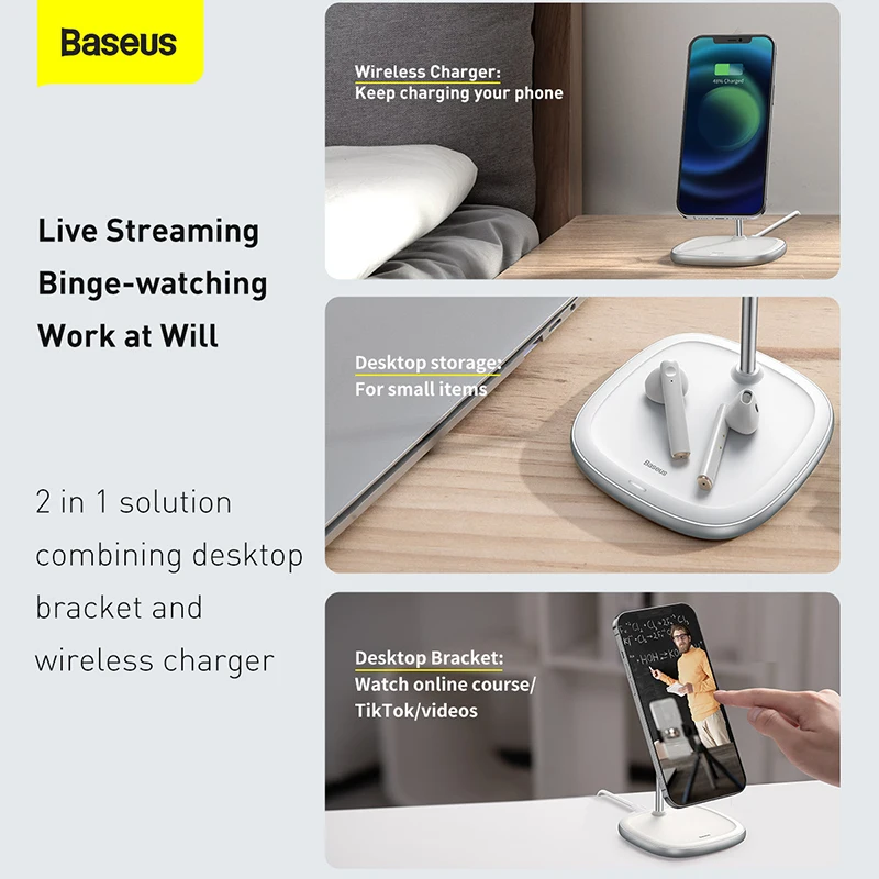 2 в 1 решение, сочетающее Настольный кронштейн и беспроводное зарядное устройство.