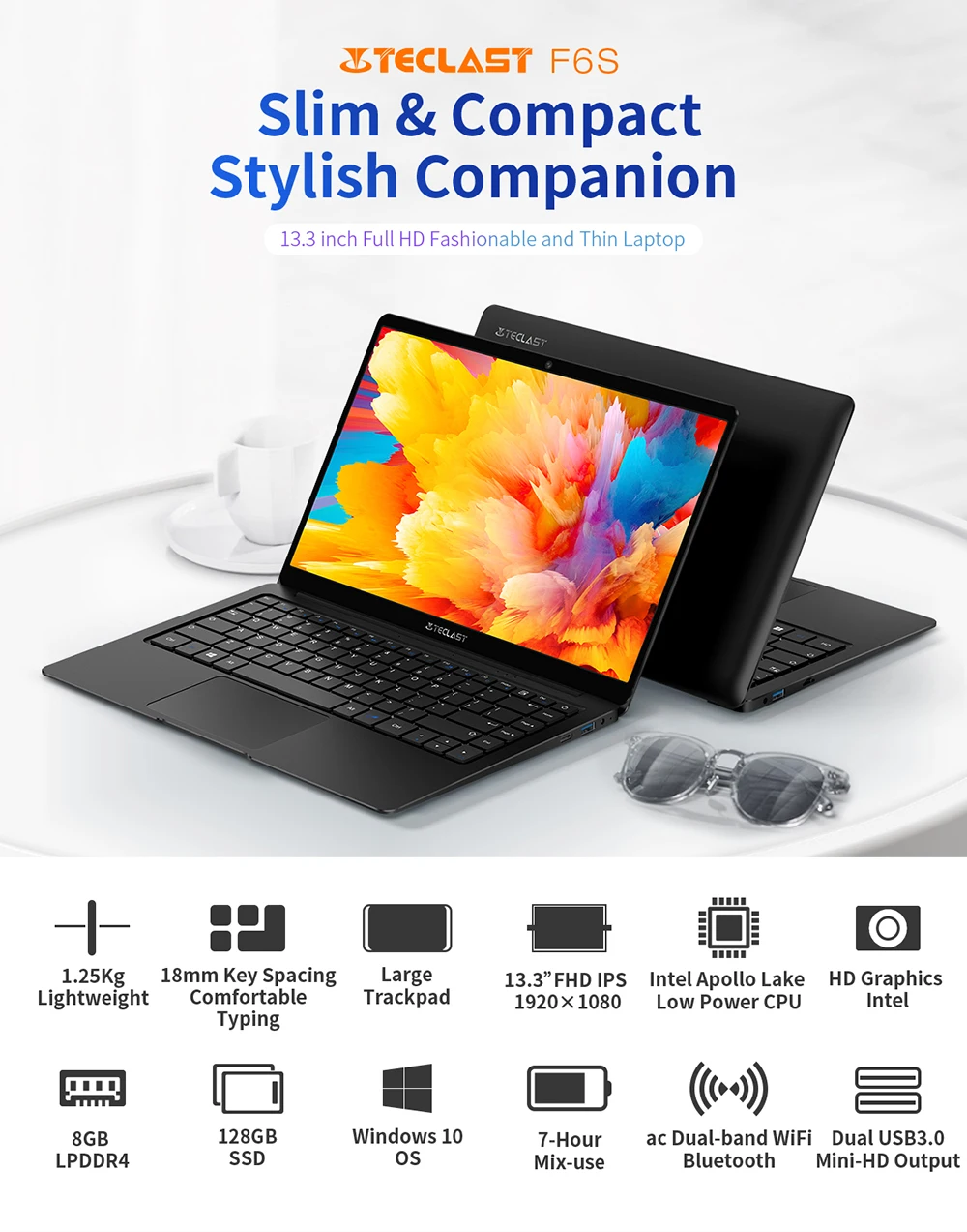 Отзывы о Новейший ноутбук Teclast F6S 13 3 дюймов 1920x1080 FHD IPS Intel Apollo Lake Windows 10 8 Гб LPDDR4 128 SSD 1 28 кг USB3.0 -