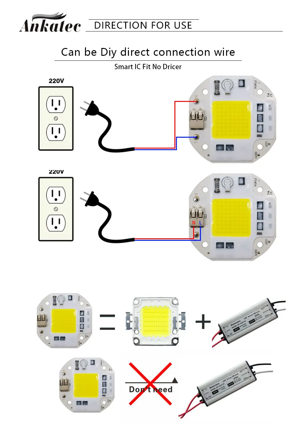 Чип модуля светодиодного COB, 220 В переменного тока, 20/30/50 Вт