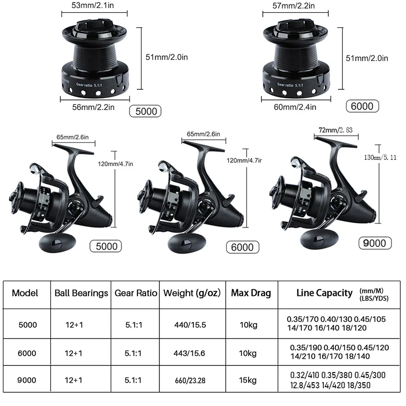 Спиннинговая катушка 5000 6000 9000 Размер 5,1: 1 Передаточное отношение соленой воды 12 + 1BB катушка рыболовного колеса катушка для карпа снасти Макс тяга 15 кгОсобенности: