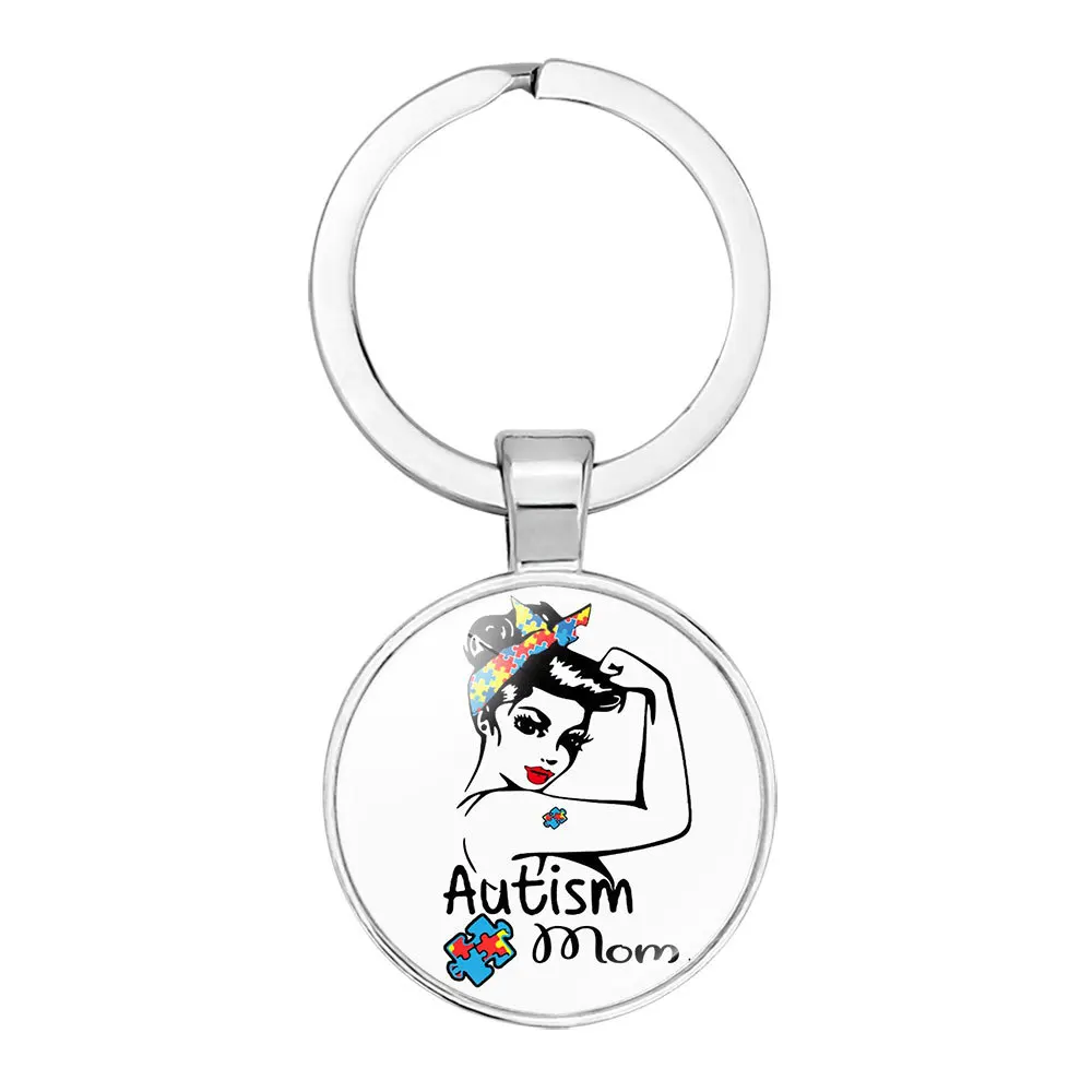Фимаодз аутизм мама брелок Радуга паззл осведомленность об аутизме символ стеклянный купол металлический кулон брелок надеюсь брелок семейный подарок
