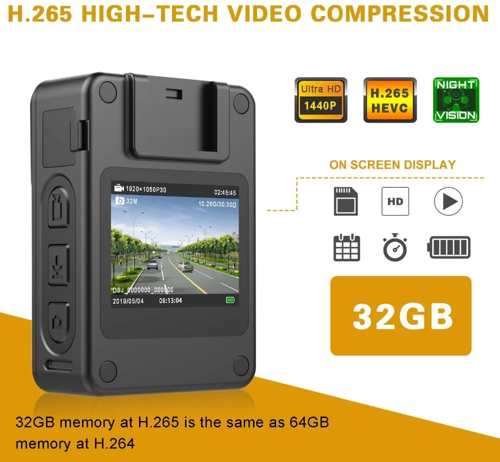 CammPro M1N HD Водонепроницаемая камера безопасности, полицейская камера, 140 градусов, полицейский Регистратор