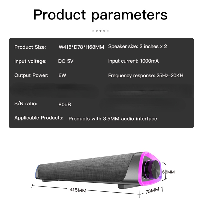 3D Surround Soundbar Bluetooth-Compatible 5.0 Speaker Wired Computer Speakers Stereo Subwoofer Sound bar for Laptop PC Theater TV Aux 3.5mm Features:- Surrounding dual speakers sound quality, stereo sound. Dual full frequency sound unit + double bass sound guide hole, realize 4 units sound, 360° stereo surround sound