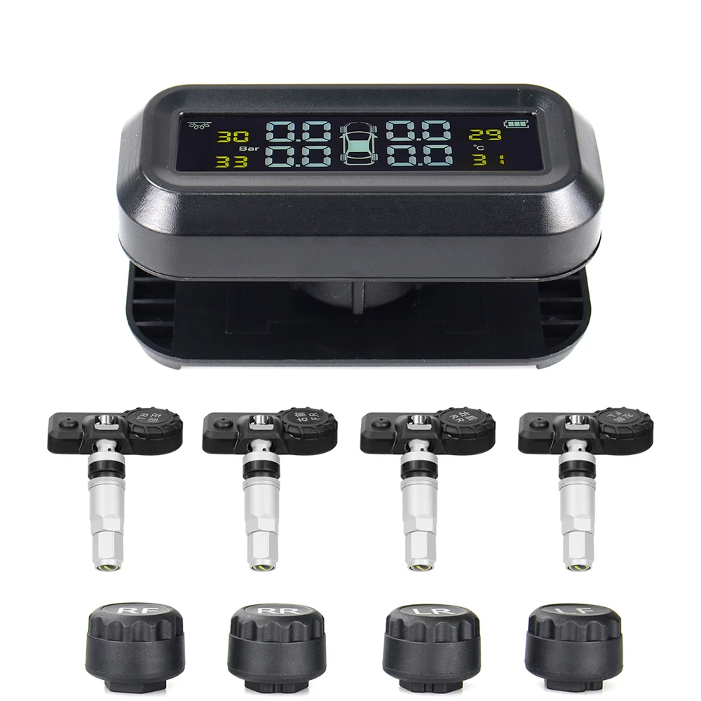 Датчик давления автомобильных шин, Система контроля давления в шинах, солнечная батарея или зарядка от USB, HD ЖК-дисплей, автоматический сигнал тревоги, 4 беспроводных внешних датчика