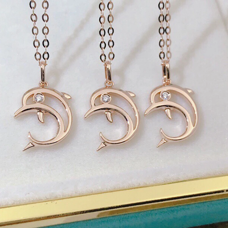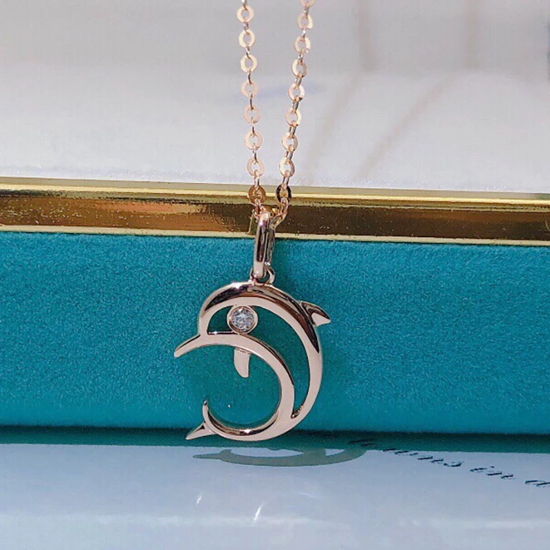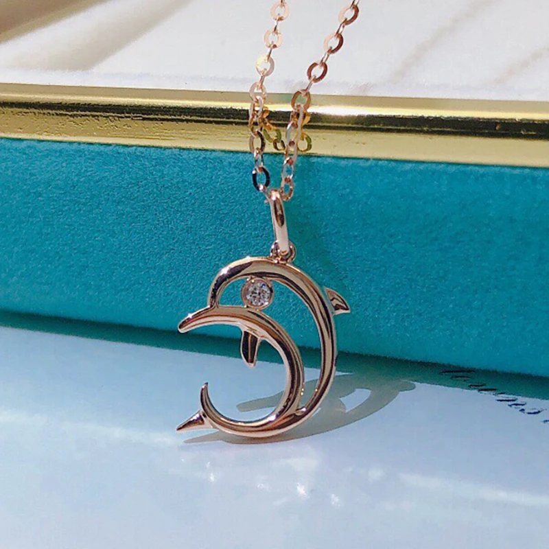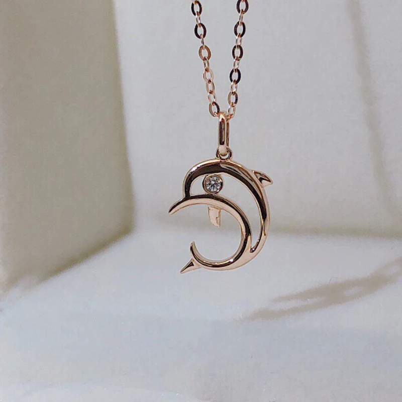 AINUOSHI 18K золото 0,01ct настоящий бриллиант, простое милое ожерелье с кулоном в виде дельфина для женщин, день рождения, памятные украшения, подарок 18 дюймов