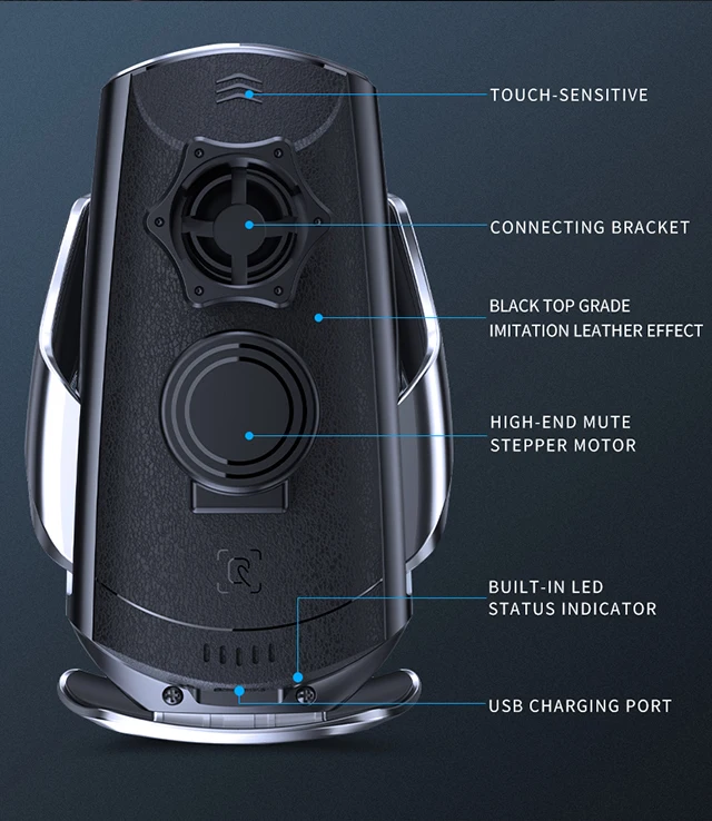 [Автоматические зажимы и управление одной рукой]-это автомобильное беспроводное зарядное устройство оснащено технологией автоматического обнаружения. Два зажима крепления автоматически закроют и захватят телефон, когда телефон крепится к автомобильному держателю; Чтобы отпустить телефон, прикоснитесь к верхней части кронштейна, зажимы автоматически открываются, затем вы можете вынуть телефон.