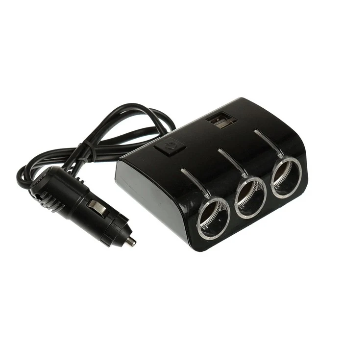 Отзывы о Разветвитель прикуривателя 3 гнезда с подсветкой 2 USB 12/24 В провод 70 см - купить по