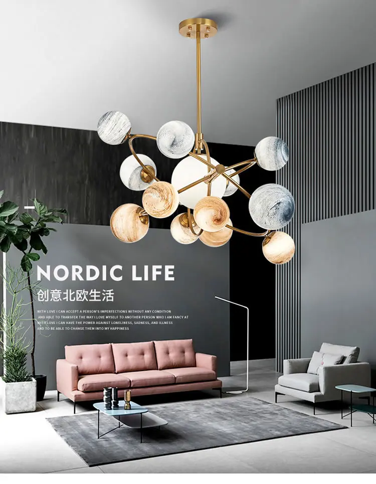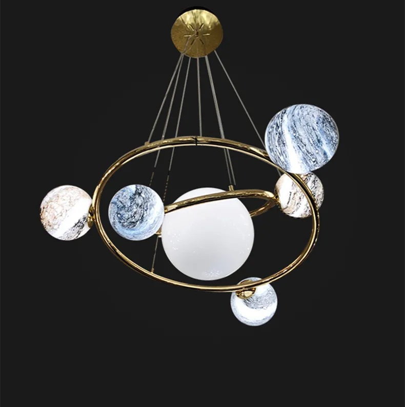 Отзывы о Стеклянная светодиодная люстра в скандинавском стиле виде шара Золотое кольцо