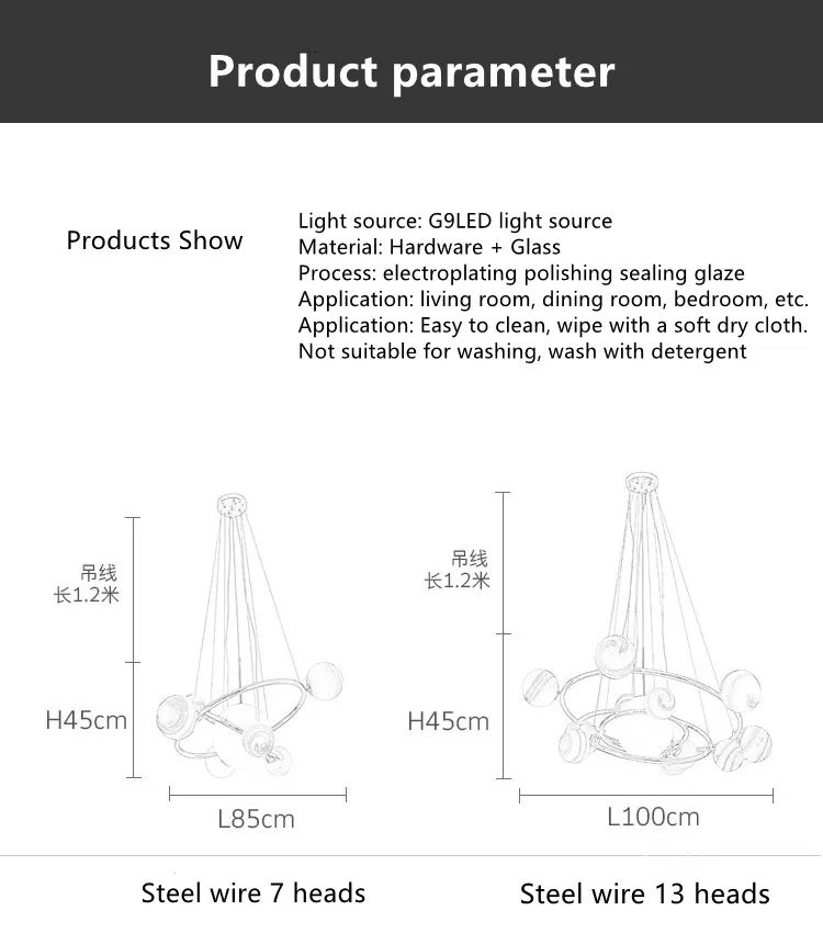 Размер: диаметр 90 см * высота 85 см светильник источник: G9 светильник источник * 13 пространство: 15-25 квадратных метров Применение: гостиная, столовая, спальня и т. Д.