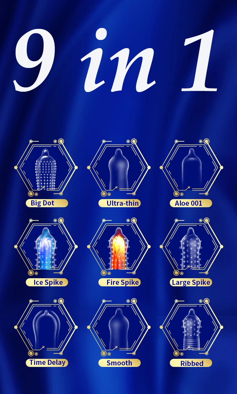 Посылка включает в себя: Всего 72 шт. (9 типов)Алоэ 001 ---2 штукиГладкий тонкий ---Детские носки 20 предметовМягкий тонкий ---10 штБольшой шип ---8 шт.Точечный ---8 шт.Большой точечный ---8 шт.Задержка времени ---8 шт.Шипы для льда ---4 шт.Горячий Спайк ---4 шт.