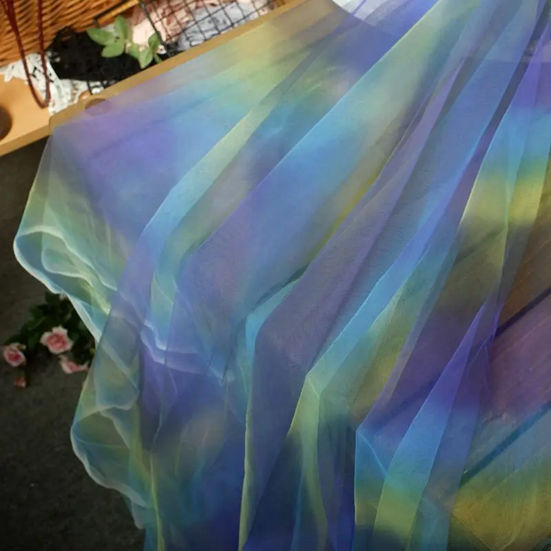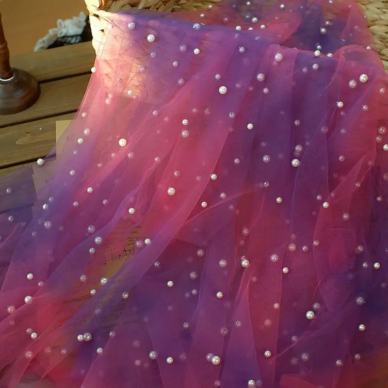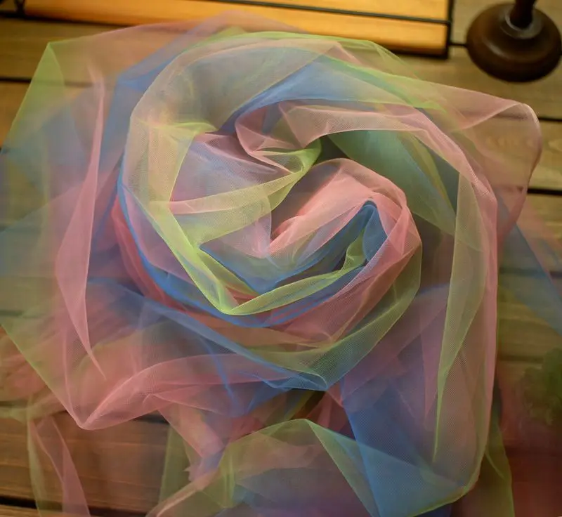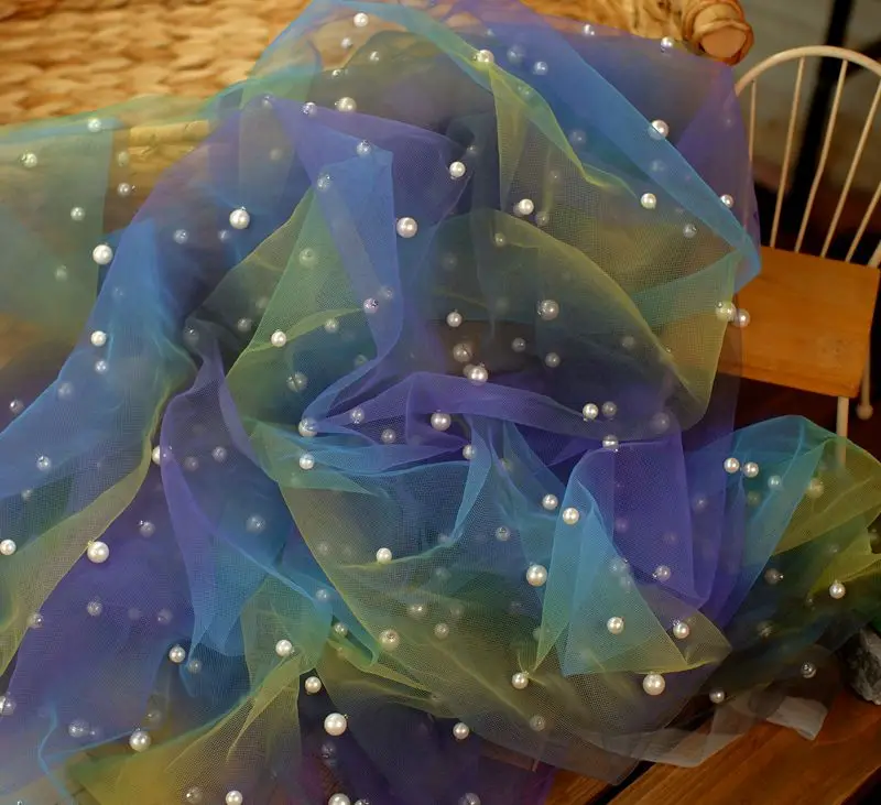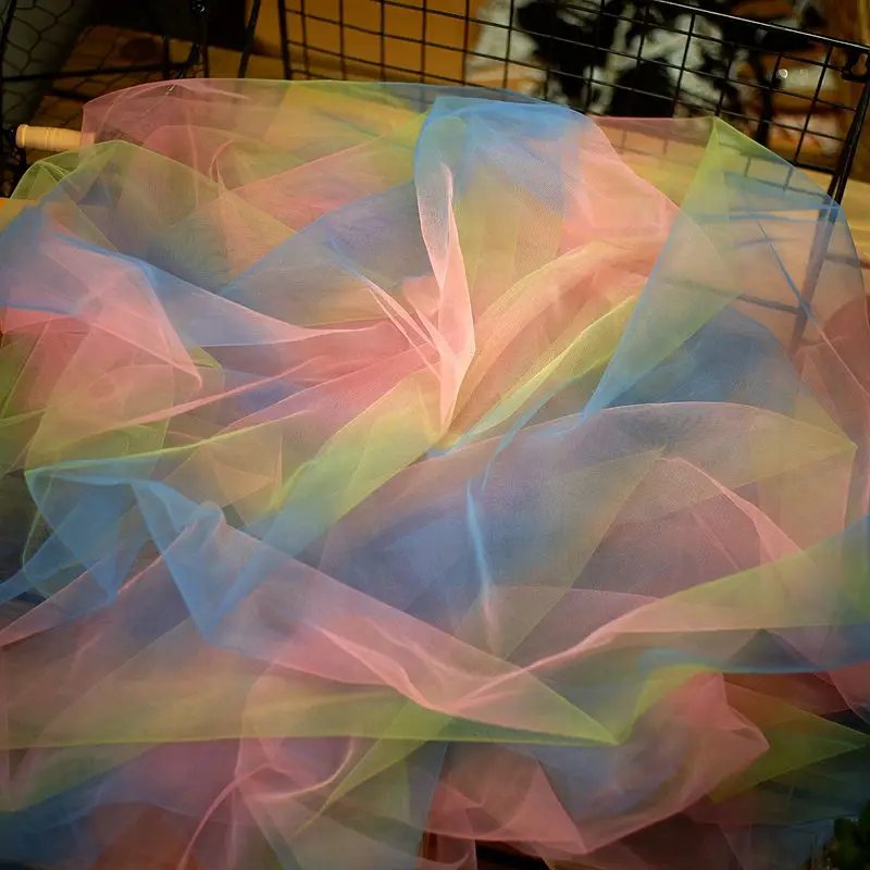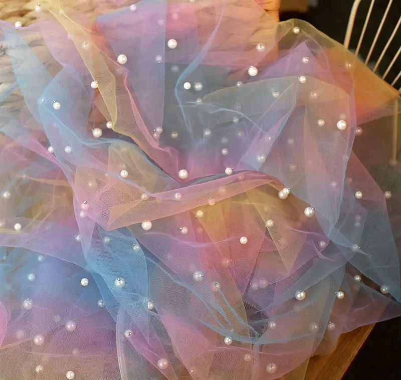 Отзывы о 160CM Wide Rainbow Beads Gradient Mesh Lace Fabric Shawl Children's Skirt Garment Background Wedding Party DIY Home Decoration - купить