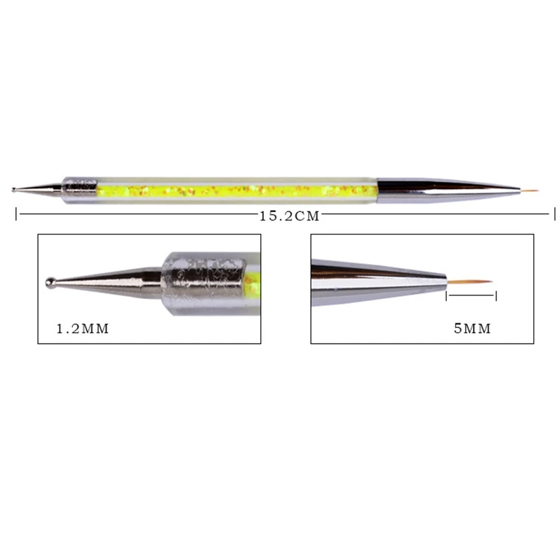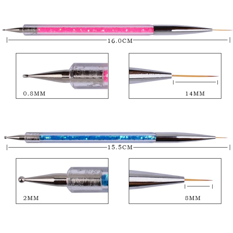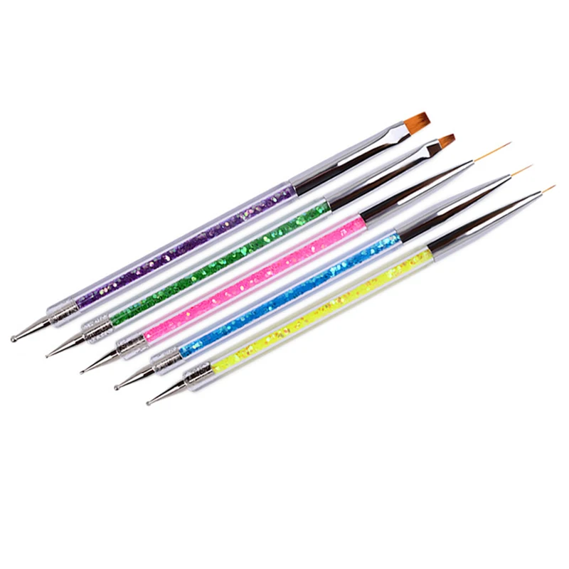 5Pcs Nail Art Dotting Pen Acrylic Rhinestone Crystal 2 Way UV Gel Painting Manicure Tool Drawing Liner Flower Brush