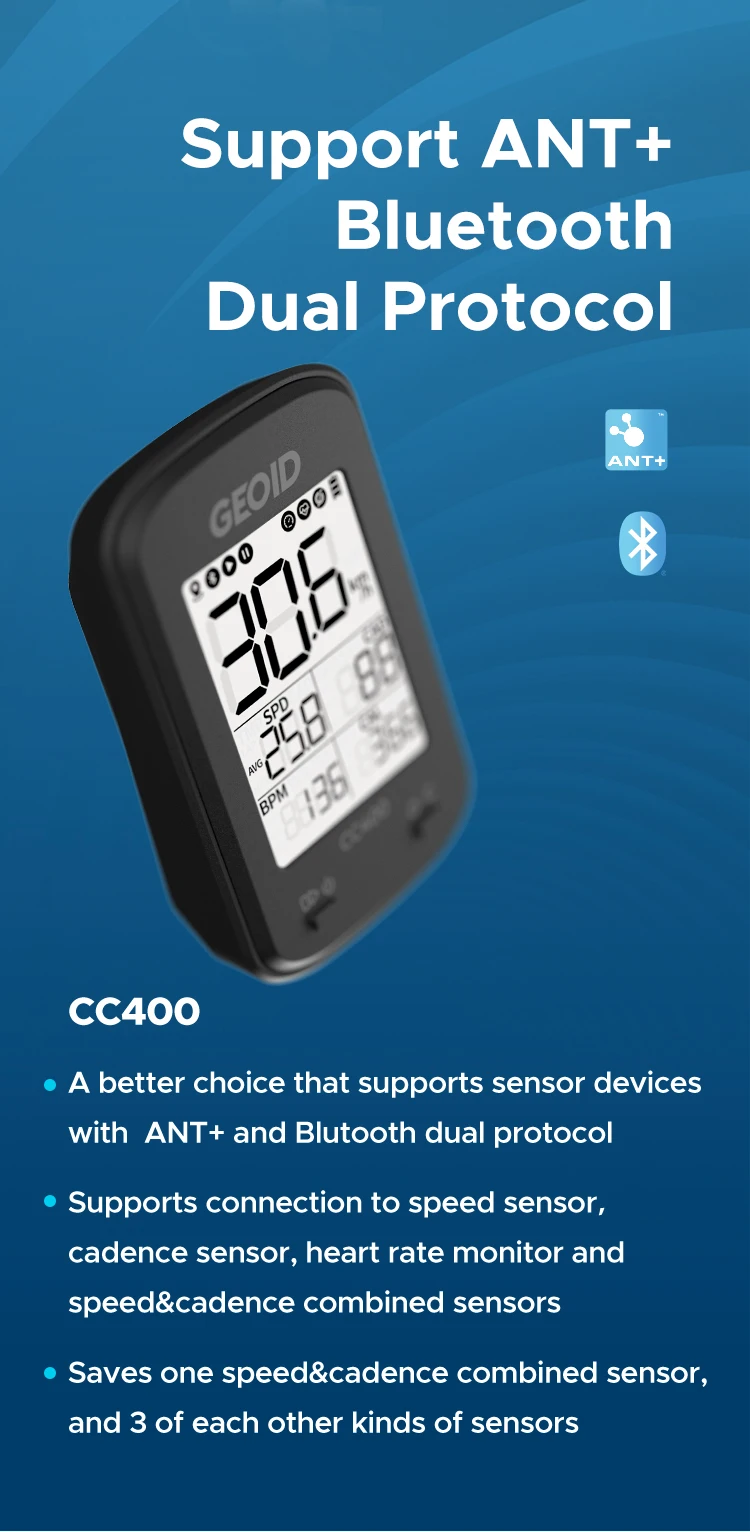 1.CC400 может быть сопряжен с датчиком скорости, датчиком кадра и датчиком сердечного ритма.