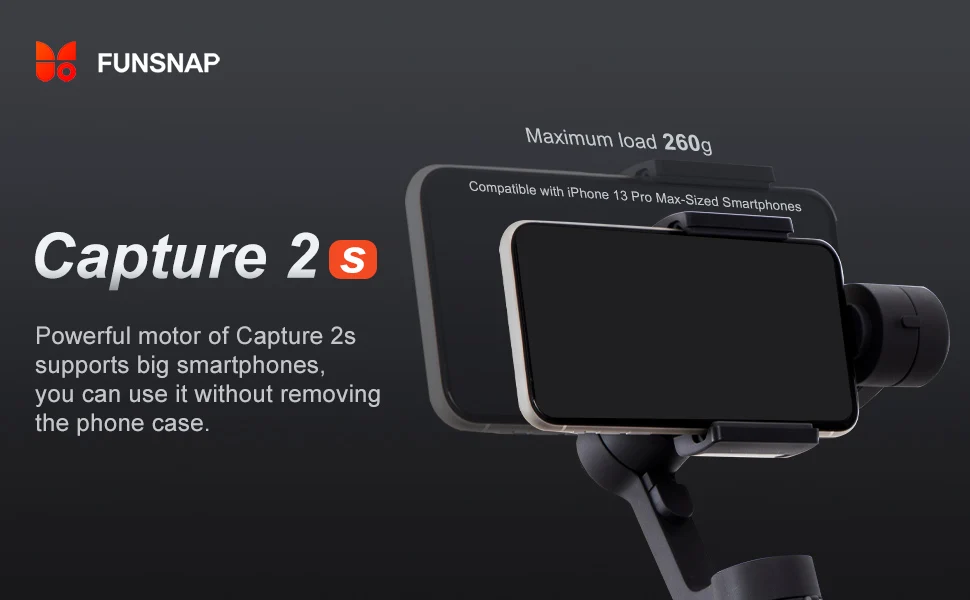 Capture 2s has a powerful motor maintaining the stability and balance for 2.16-3.47 inches wide phones , compatible with smartphones such as iPhone 13/12/11 Pro Max without taking the case off your phone when using the gimbal.