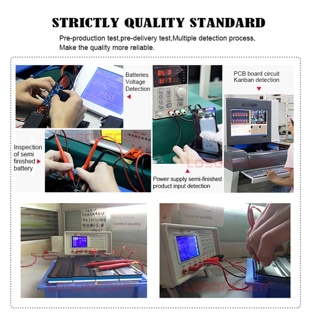Профессиональное тестирование всехLOSONCOERАккумулятор прошел строгий контроль качества перед отправкой: 100% новый и O цикл, без эффекта памяти, 72 часа испытания на старение, высокая температура статического и активировать внутренний химический элемент ячейки, обеспечивает стабильность зарядки и разрядки. Поэтому вам не нужно активировать, заряжать или использовать его немедленно.