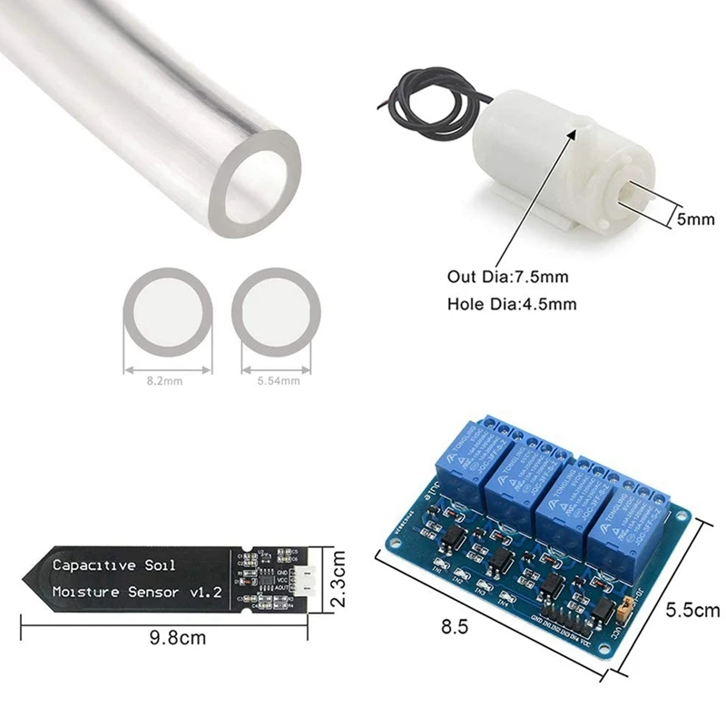 [Автоматическая система полива] комбинированные насосы, трубки, датчик влажности почвы и 4-Канальный Релейный Модуль 5 В в одной системе полива растений, включая наборы для всей системы капельного орошения Arduino DIY.