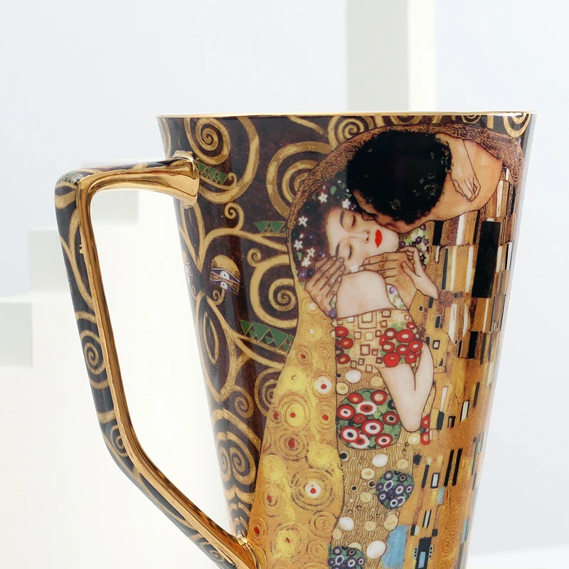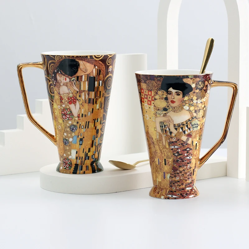 550 мл костяные китайские кружки с ложкой Klimt винтажная художественная живопись 4 стиля в наличии