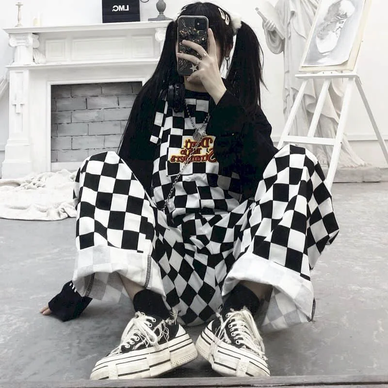 Отзывы о Женский винтажный комбинезон в стиле Харадзюку повседневный Свободный клетку с