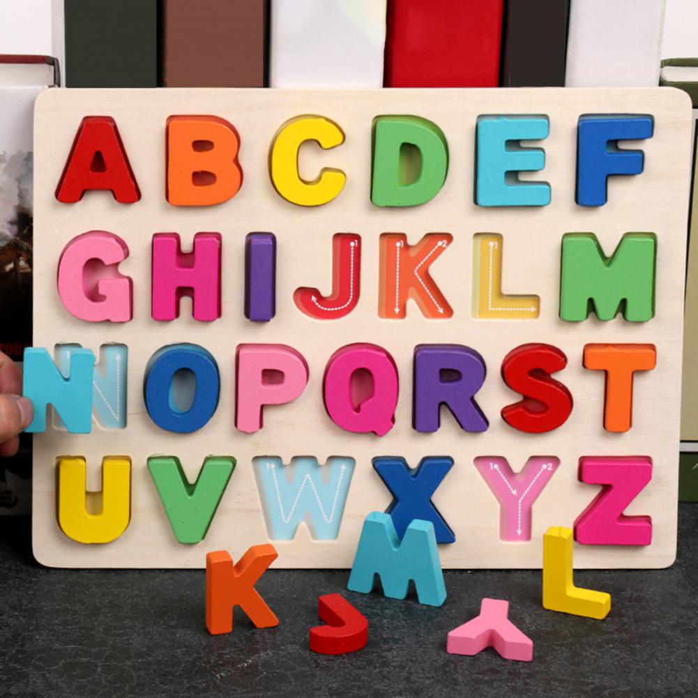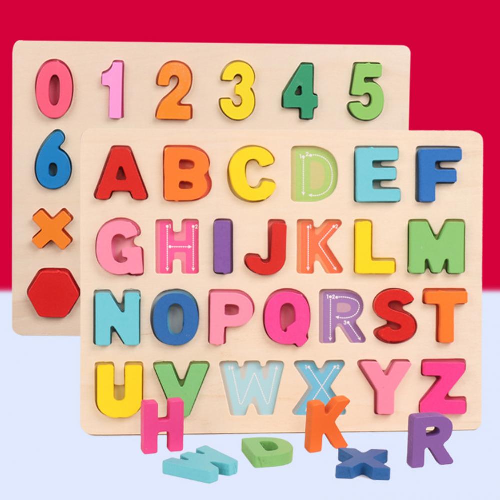 Детское раннее образование развитие интеллекта Алфавит ABC цифры деревянные пазлы доска обучающая детская игрушка обучающий подарок