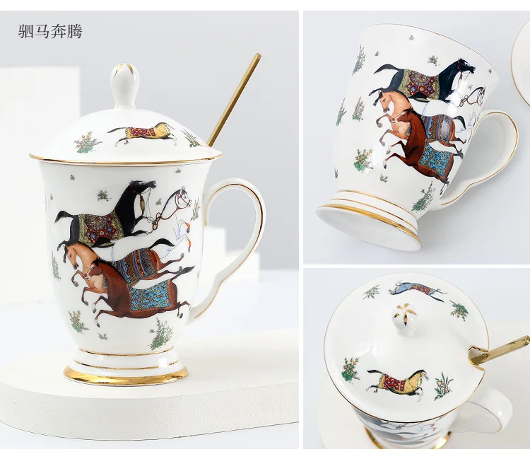 Костяной фарфор кофейная кружка с крышкой и ложкой