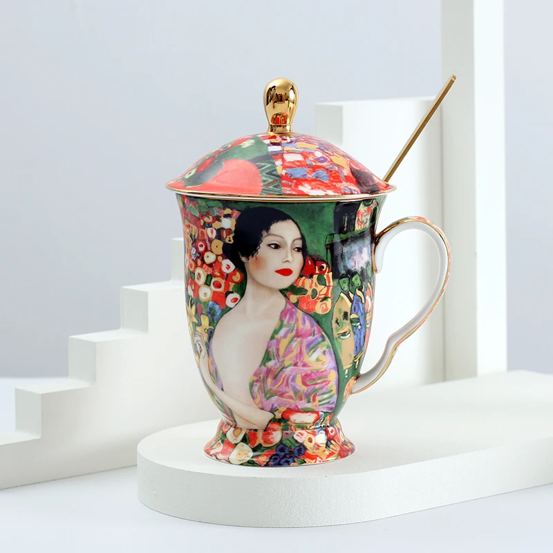 Отзывы о Кофейная кружка с крышкой и ложкой из костяного фарфора изображением Климта