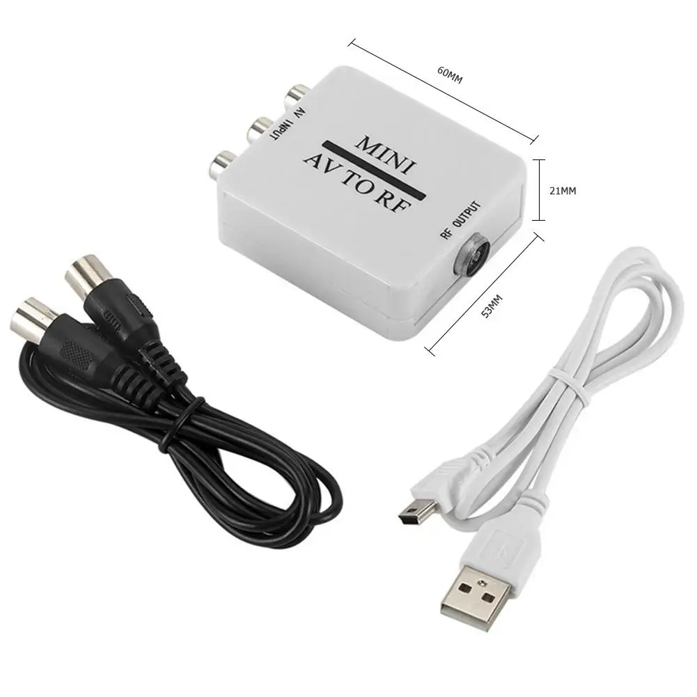 1. Мини HD видео конвертер коробка RCA AV CVSB к RF видео адаптер конвертер поддерживает RF 67,25 MHz 61,25 MHz AV к RF zoom TV switcher. 2. Преобразователь сигнала Micro AV в RF преобразует видеосигнал или аудиосигнал в композитный видеосигнал RF и аудиосигнал, а также поддерживает вспомогательный сигнал DVI системы. Для воспроизведения по телевизору, видеомагнитофону VHS, dvd-рекордеру и т. Д. 3. Нет необходимости устанавливать драйвер, портативный, гибкий, подключи и работай. 4. Низкое энергопотребление, без адаптера питания. Характеристики: Входной интерфейс: 1 RCA Выходной интерфейс: 1 X RF Частота RF: 67,25 МГц, 61,25 МГц Материал: пластик Цвет: белый Размеры: 60X53X21 мм/2,36X2,09X0,83'' Длина линии электропитания: 60 см/23,62 дюйма RF линия Длина: 1,1 м/3,61 ft Примечания: 1. Из-за различных настроек монитора и светильник эффект, фактический цвет элемента может быть s светильник ly отличается от цвета, представленного на снимках. Спасибо! 2. Возможны отклонения в 1-3 мм вследствие измерений вручную.
