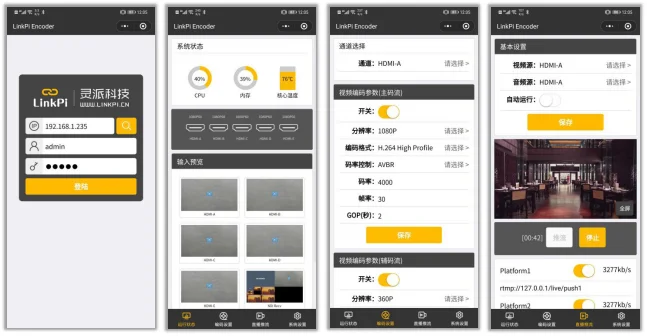 Характеристики продукта ультра-чистый входной многопротокол прямой трансляции поддержка NDI, SRT, высокая степень сжатия, расширенные функции 1080P60 rtsp/rtmp/http/hls, может использоваться с программным обеспечением, таким как vMix H.265 + smartP водяные знаки, оптимизация изображения Интерфейс определение производительности Параметры Основной чип производительности: Hi3520DV400 CPU: ARM Cortex-A7@1.3GHz 32кб I-Cache, 32кб D-кэш-память: 512 Мб DDR3 Flas
