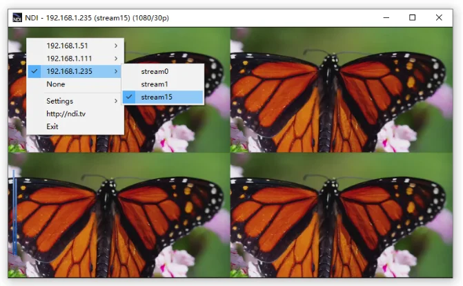Вы также можете использовать NDI DEMO без покупки лицензии NDI. Он используется для 30 минут после запуска, и экран будет черным через 30 минут, и его можно использовать снова в течение 30 минут после перезапуска. Но это влияет только на NDI, а не на другие протоколы (такие как SRT, RTMP, RTSP, HTTP, UDP и т. д.).