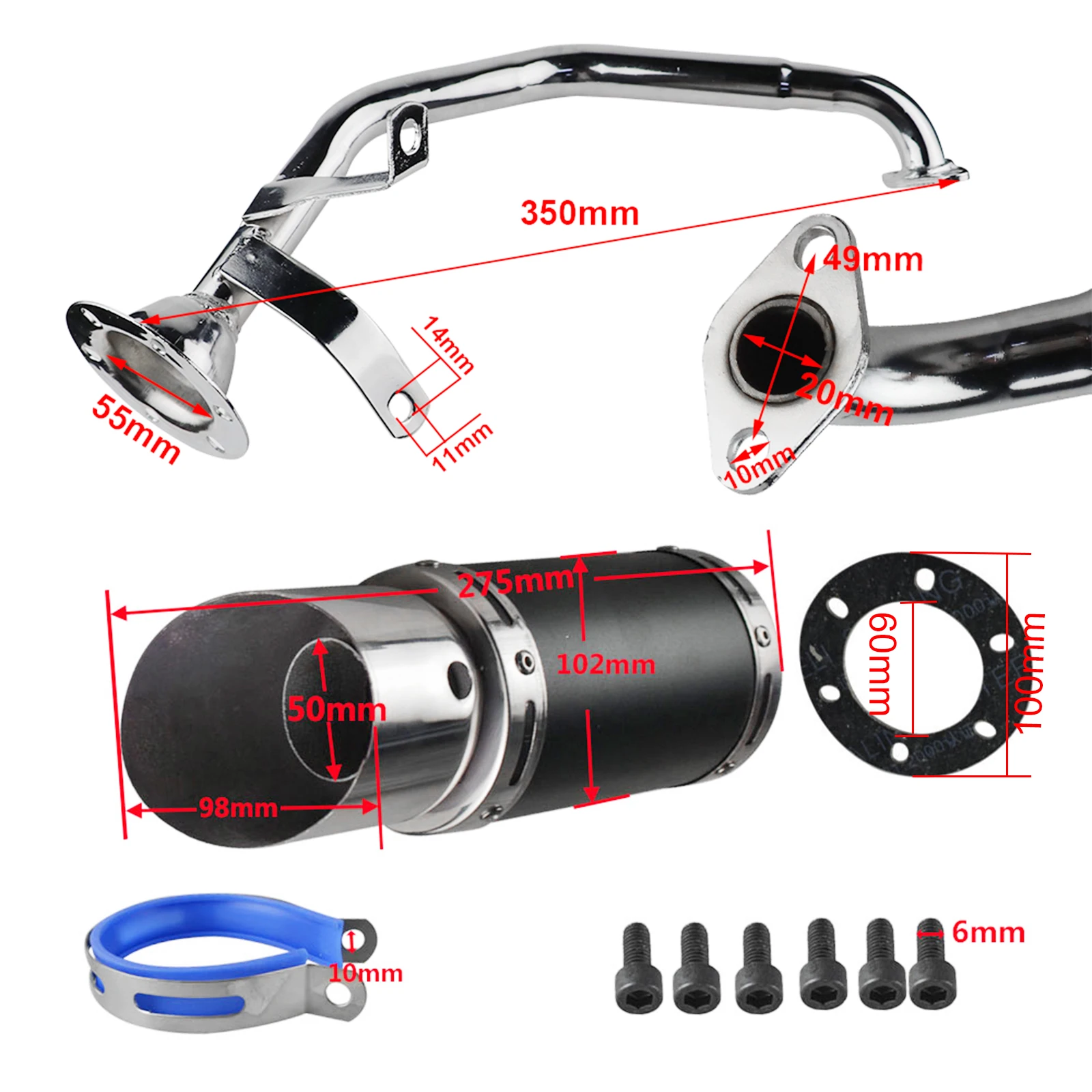 Отзывы о Гоночный выхлопной глушитель трубная система для GY6 125cc 150cc 152QMI 157QMJ 4-тактный