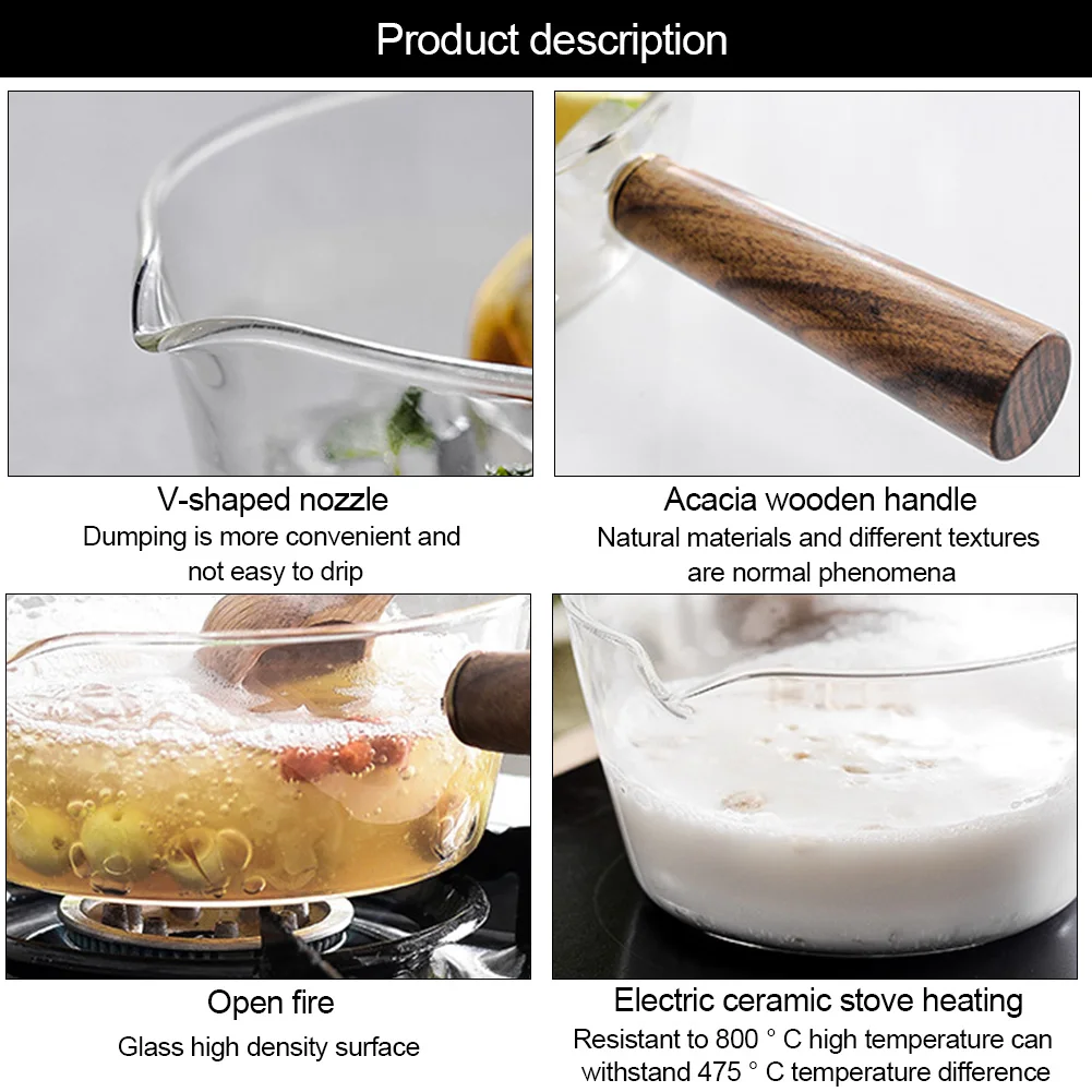 Обработка стеклянной трубки обеспечивает гладкую поверхность. Не легко трескаться, износостойкий, устойчивый к коррозии и легко моется. Используйте теплую воду для предварительного нагрева, а затем варите на медленном огне, потому что боросиликатное стекло является термостойким, и его необходимо использовать d осторожно при приготовлении пищи на открытом пламени.
