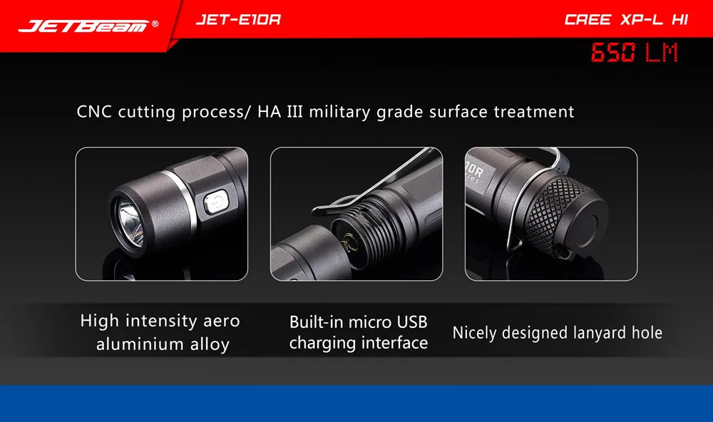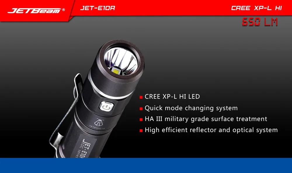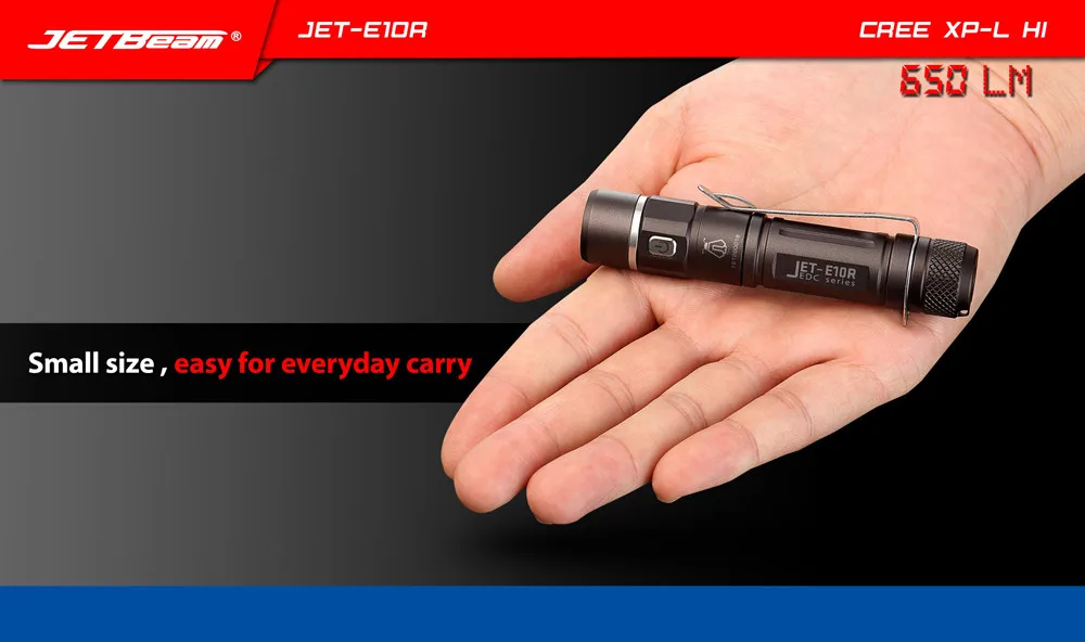 Jetbeam E10R-отличный фонарик EDC. С крепким кармашком, который уже прикреплен, любой карман будет рад получить много места! Это очень удобно для повседневного освещения.Компактный дизайн, мини размер. Легко носить с собой каждый день, специально разработан для пеших прогулок, кемпинга, чрезвычайных ситуаций и т. д. использует CREE XP-L HI с максимальной выходной мощностью 650 люменов.