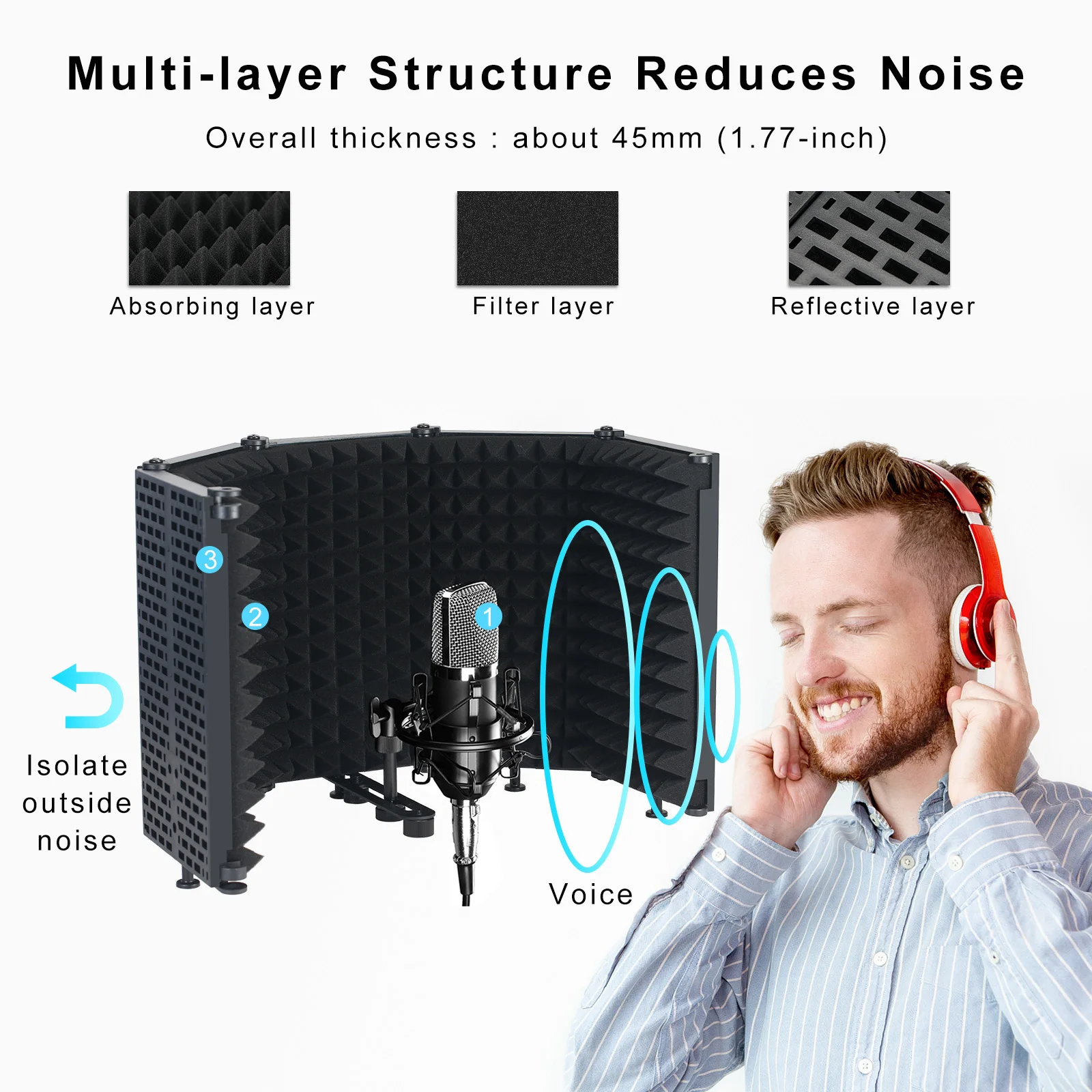 Изоляционный щит микрофона состоит из пяти дверей. Складная конструкция панели, угол можно свободно регулировать.
