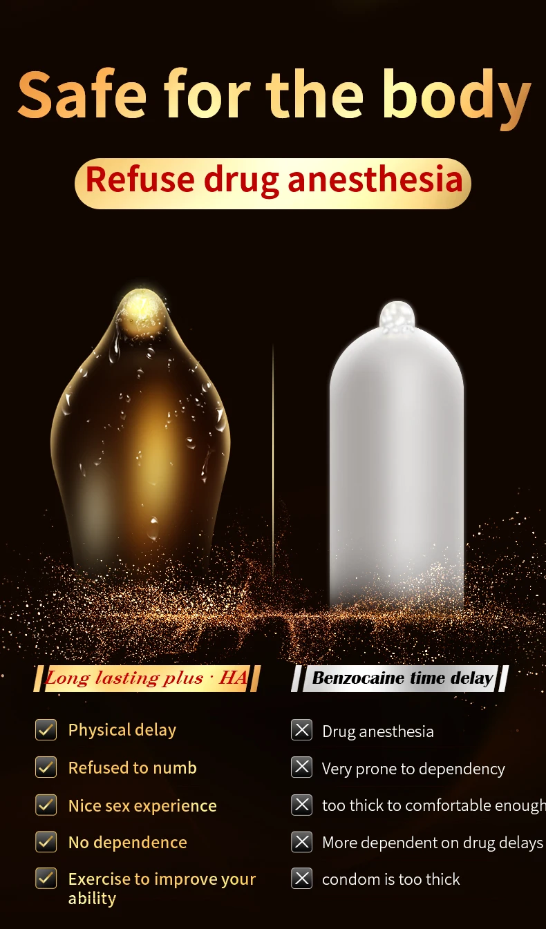 Особенности:1. Утолщите головку презерватива, чтобы уменьшить чувствительность к гланам, чтобы задержать эякуляцию.2. Избегайте побочных эффектов задержки лекарств на теле.3. Все они были протестированы в электронном виде, чтобы гарантировать надежную защиту от контрацепции, а также эффективное предотвращение инфицирования и других передаваемых половым путем заболеваний.