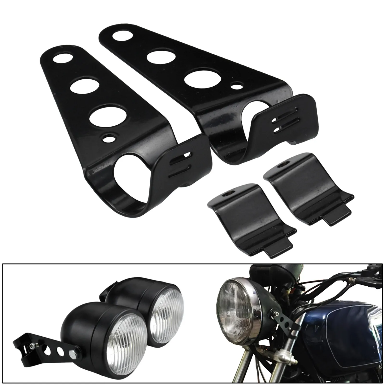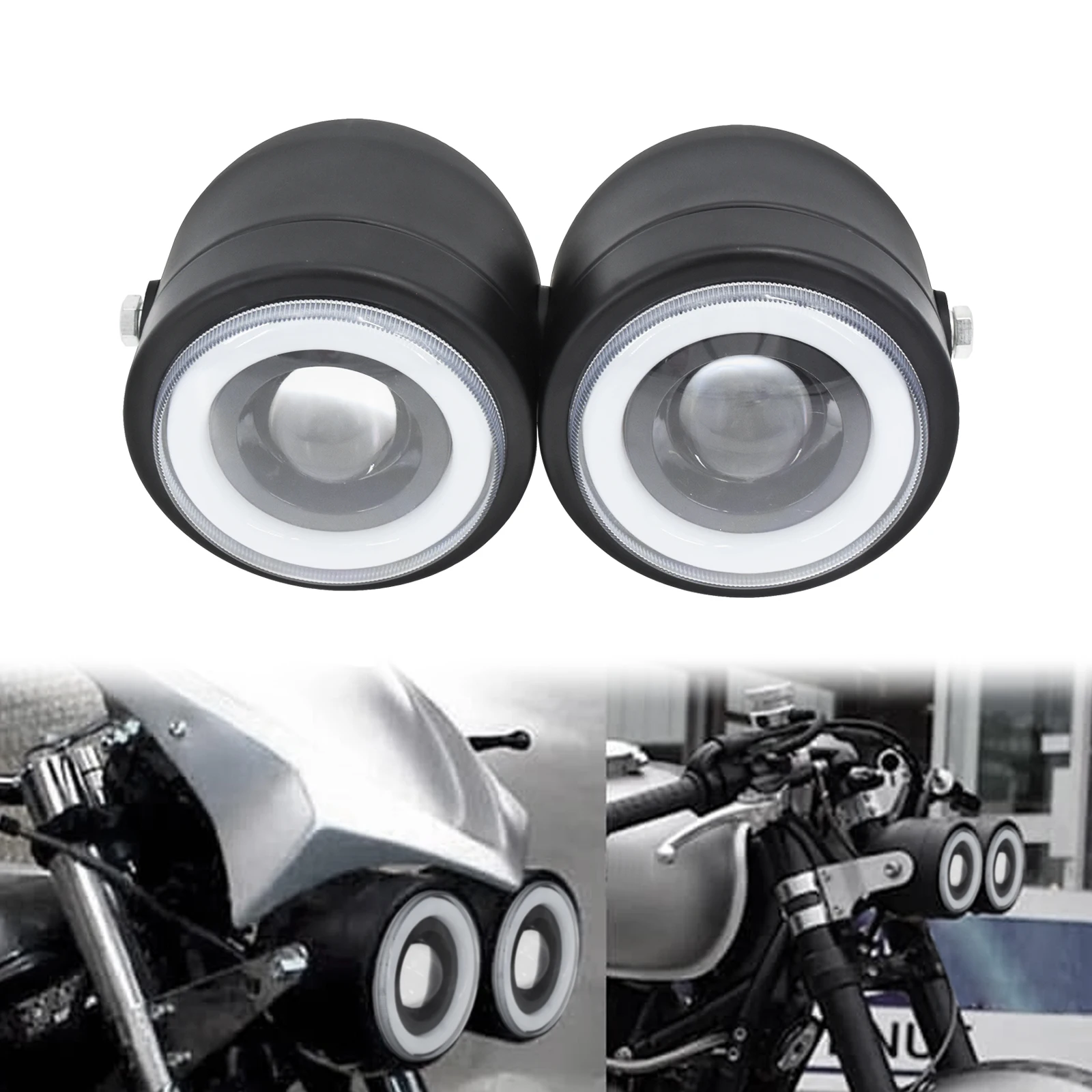 Отзывы о Мотоцикл двойной фары янтарные ангельские глазки W/кронштейн держатель черный