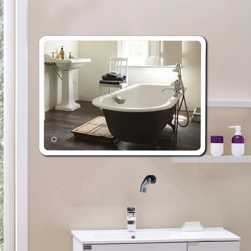Название продукта: холодный белый ЖК-круглый угол 4 мм, Меркурий, зеркало для ванной комнаты без меди