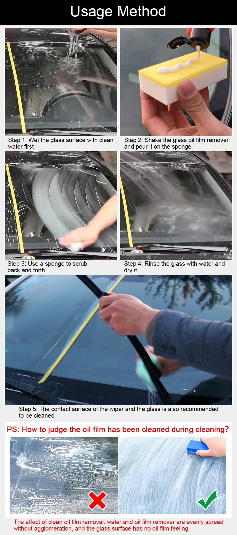 Самоконтроль: Этот стеклянный масляный Съемник пленки состоит из различных новых поверхностно-активных веществ, плавучих агентов и подвесных агентов. Он не только оказывает сильное очищающее воздействие на пятна масляной пленки, но также покрывает стекло пленкой после очистки, чтобы остановить другие мусор от присоединения к стеклу, эффект может длиться около одного месяца, одна бутылка может использоваться несколько раз. Особенности: * Универсальный стеклянный масляный Съемник пленки для лобового стекла автомобиля, зеркала заднего вида автомобиля и окна автомобиля * Объем: 120 мл Как использовать: Сначала намочите стакан водой, затем Налейте на губку Съемник пленки масла, равномерно распределите его по стеклу, равномерно протрите его, а затем сразу намочите краску водой. (Также рекомендуется очистить стеклоочистителя с маслом Съемник пленки при очистке)