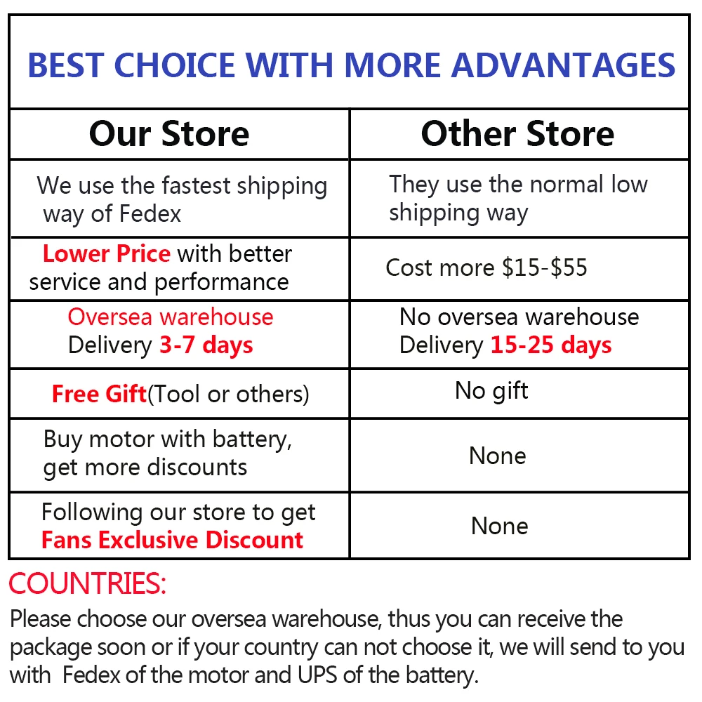 5. Наш двигатель в основном использует DHL транспортировку, а в некоторых странах используется DPD транспортировка; Основная транспортировка батареи-UPS.