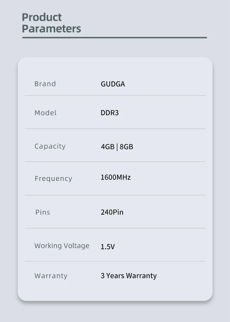 Отзывы о Оперативная память GUDGA Dimm для настольного ПК ОЗУ ddr3 8 ГБ 4 Память телефона 1600 МГц 1 5